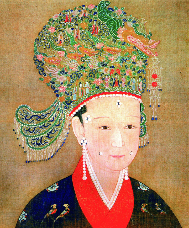 宋钦宗皇后像局部(现藏台北故宫博物院),珍珠花钿与长耳环是宋代皇后的标配。《郑和宝船的世界》插图