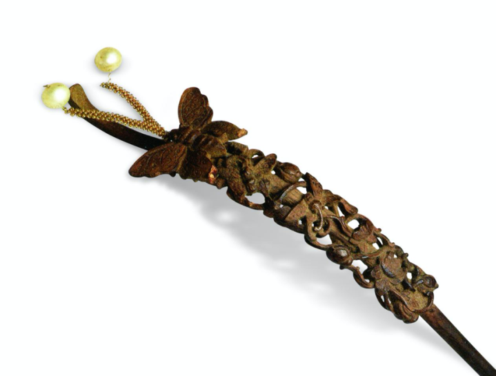 清代用整片奇楠(沉香的一种)雕成的长簪局部(现藏台北故宫博物院)。《郑和宝船的世界》插图